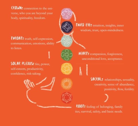 I really enjoyed the content and the illustrations (this is especially great for us visual learners). I first want to share with you the part about chakras – different energy vessels that live along our spine, neck and brain. Each individual but still connected.